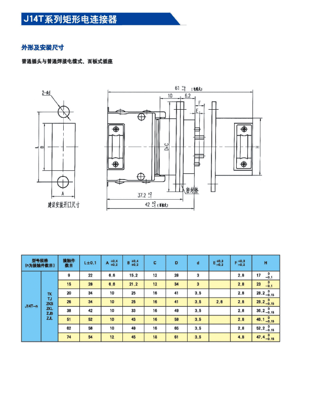 鄭州航天電子-J14T系列矩形電連接器,屬于低頻連接器,鋁合金殼體,圓角防反插,端接形式為普通焊接式,導(dǎo)線焊線截面積不大于0.15mm2, 雙保險鎖緊機構(gòu),具有防露密封功能。