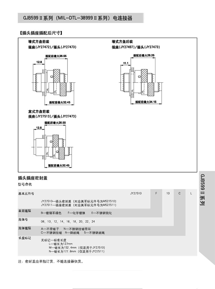 MS27473T14F35SN圓形航空電連接器,參照MIL-DTL-3899KII系列的標準,卡口快速連接,種類輕,殼體短,,適用于不承受高強度振動或不經受惡劣風沙和潮濕的場合。