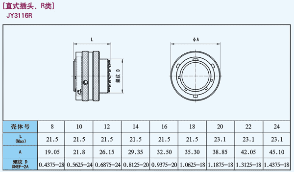 JY3116E14-15PNL高密度航空接頭,符合GJB598(MIL-C-26482)I系列,卡口式快速連接,接觸件端接形式為焊接,體積小、密度高,耐環(huán)境好,廣泛適用于各類軍用、民用設(shè)備中。* 符合GJB 598(MIL-C-26482)Ⅰ 系列* 卡口式快速連接* 接觸件端接形式為焊接* 體積小、密度高、耐環(huán)境好* 廣泛應(yīng)用于各類軍用、民用設(shè)備中。
