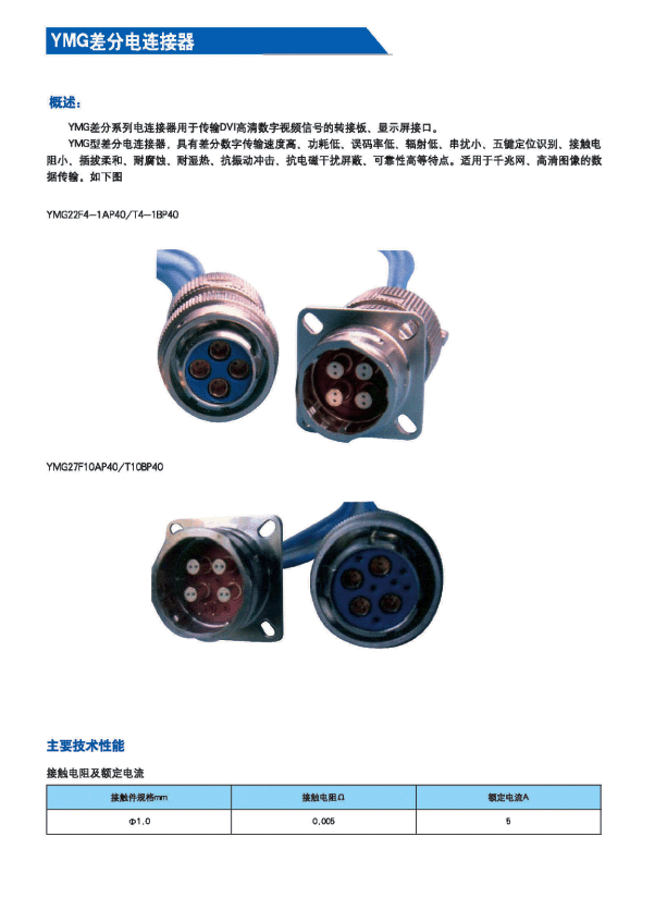• 中航光電-YMG 系列多芯差分連接器