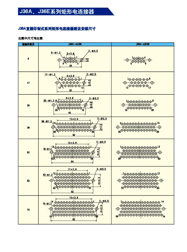 J36A,E矩形航空接插件,執(zhí)行Q/HD20038-2007詳細規(guī)范,屬于儀器式電連接器。具有體積小、密度高、規(guī)格齊全、雙保險鎖緊結(jié)構(gòu)、可靠性高等優(yōu)點,端接形式為焊接式和直插印制板式。廣泛應用于航天、航空、兵器、艦船、通訊、計算機等行業(yè)的設備儀器艙內(nèi)部電信號連接。
