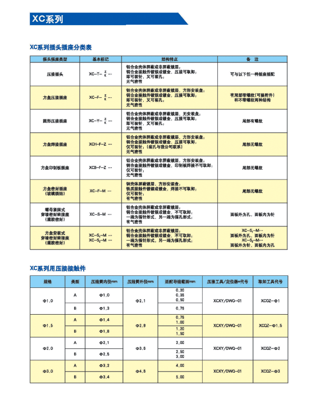 XC系列航空電連接器(航空插頭)為低頻類電連接器。九種殼體號;4種接觸件規(guī)格;32種孔位排列。從1孔到62孔。采用卡口式快速連接系統(tǒng),操作方便,連接可靠,耐振動,抗沖擊。五鍵槽定位,具有盲插和防誤插功能。高可靠的雙曲面線簧孔使連接器插拔柔和,接觸電阻小,工作可靠。插座共有五種結(jié)構(gòu)