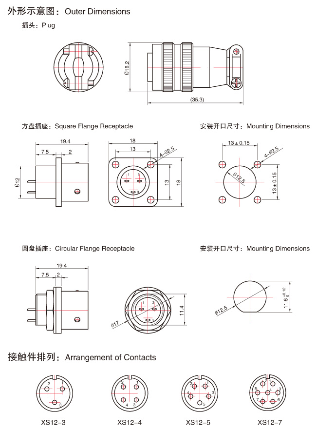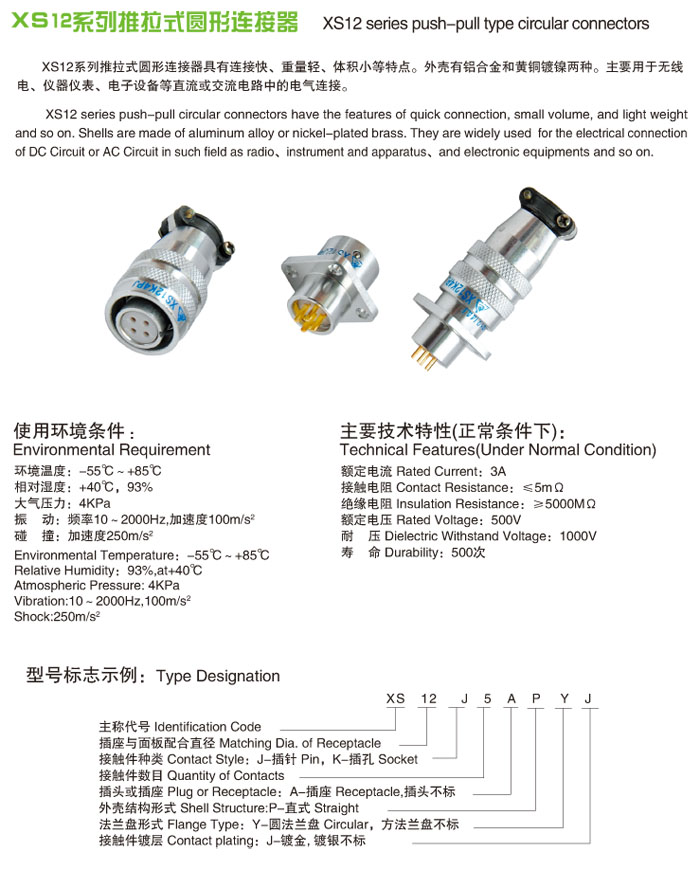 XS12推拉式圓形電連接器 的外殼配合直徑為12mm,接觸對有3.4.5.7芯,插頭分為電線夾固式和像膠互套式二種,插座分為方形和圓形二種,可直接安裝在面板上使用,連接器的外殼為黃銅,表面噴砂鍍鎳,外型小巧美觀,連接形式為推入式鋼球鎖緊,插拔迅速方便,本產(chǎn)品適用于各種儀器,電子設(shè)備等交直流電路的連接。有連接快,重量輕、體積小等特點。外殼有鋁合金和黃銅鍍鎳兩種。主要用于無線電、儀器儀表、電子設(shè)備等直流或交流電路中。