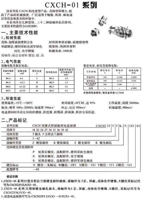 CXCH-01壁體加厚船舶防水航空電連接器,是CXCH的改型產(chǎn)品,較之XC與CXCH系列不同之處在于增加了殼體壁厚,提高了產(chǎn)品的機械強度。CXCH-01航空插頭廣泛應(yīng)用于艦船、郵電通訊、機床等設(shè)備中,以及惡劣的工作環(huán)境中。