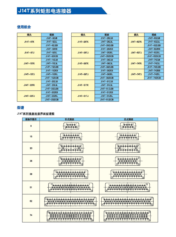 74芯矩形電連接器有好多系列,我公司有:J30J,J14A,J36A系列。請(qǐng)參照以下表格,根據(jù)自己的要求選用。