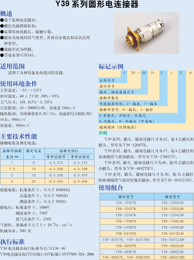 • 中船永志Y39-2419ZJH真空密封插頭座