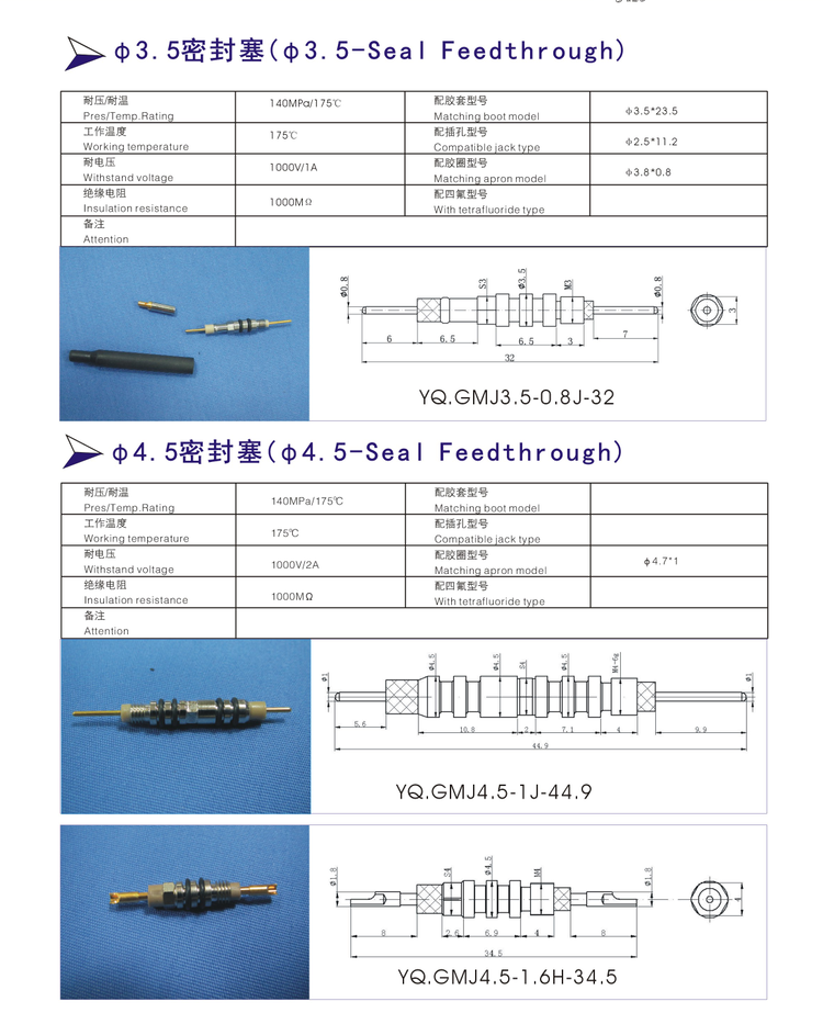 石油探針密封塞,種類多,探針有粗細(xì),長(zhǎng)短有多少,采用PEEK進(jìn)口熱性塑料,耐高溫,粘合性能強(qiáng),抗腐蝕。