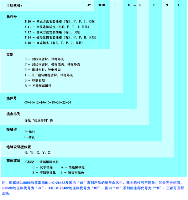 JY3116E14-15PNL高密度航空接頭,符合GJB598(MIL-C-26482)I系列,卡口式快速連接,接觸件端接形式為焊接,體積小、密度高,耐環(huán)境好,廣泛適用于各類軍用、民用設(shè)備中。* 符合GJB 598(MIL-C-26482)Ⅰ 系列* 卡口式快速連接* 接觸件端接形式為焊接* 體積小、密度高、耐環(huán)境好* 廣泛應(yīng)用于各類軍用、民用設(shè)備中。