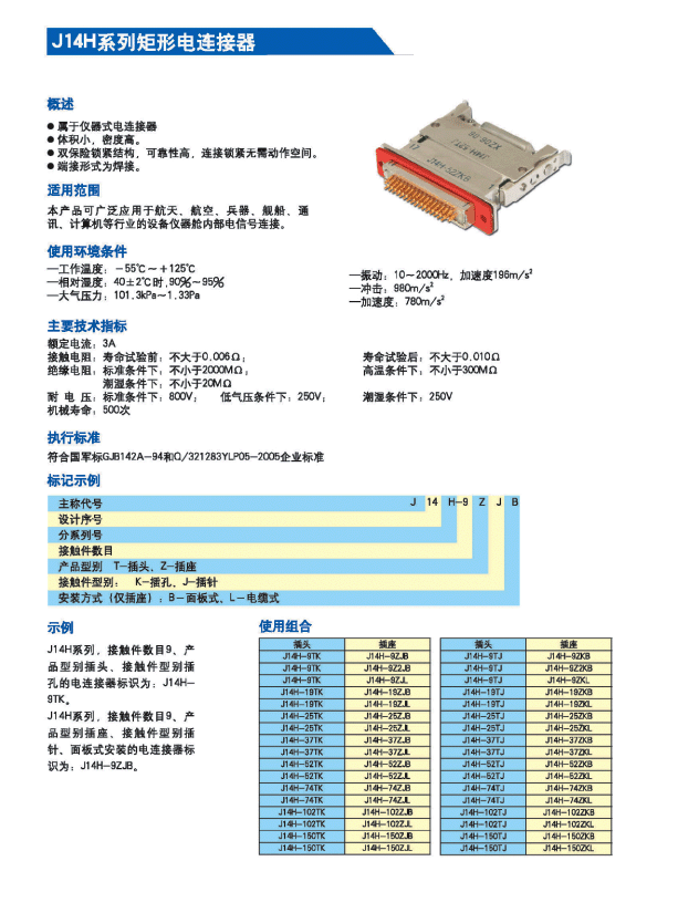鄭州J14H-19ZJB/TK矩形接插件,雙保險(xiǎn)鎖緊結(jié)構(gòu),體積小,密度高,端接形式為焊接。 ·屬于儀器式電連接器 ·體積小、密度高。