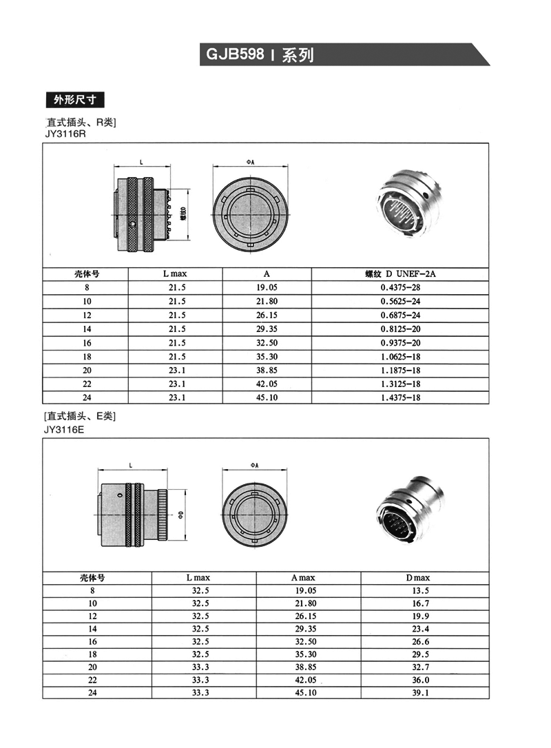 GJB598I系列(JY3116)圓形接插件符合GJB 598(MIL-C-26482) I系列,該系列航空插頭卡口式快速連接,接觸件端接形式為焊接,體積小,密度高,耐環(huán)境好,廣泛適用于各類軍用、民用設(shè)備中 。