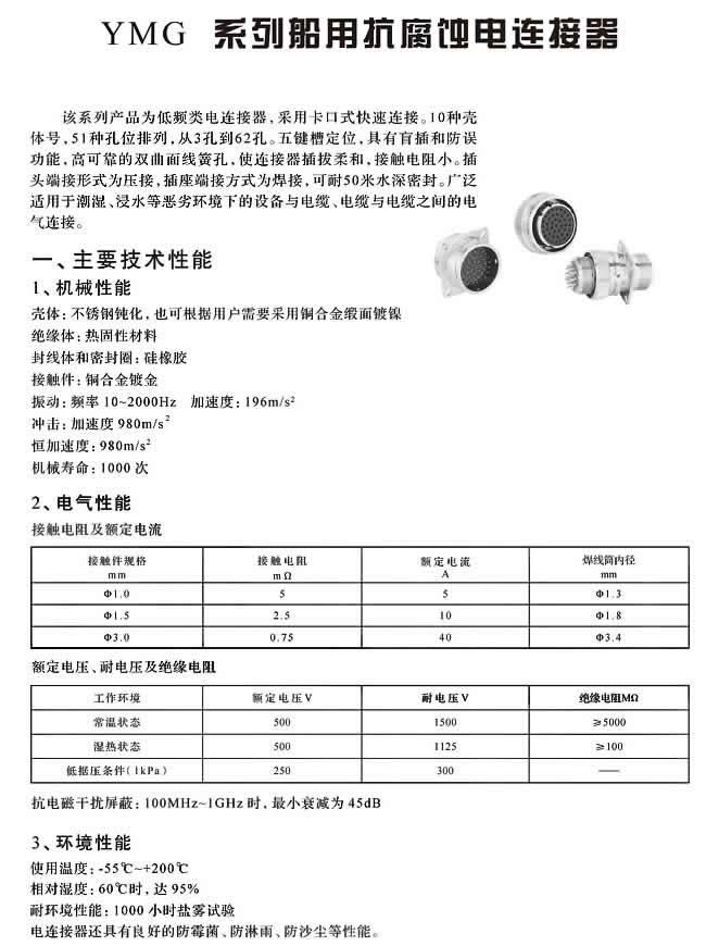 YMG系列船用防水抗腐蝕圓形電連接器