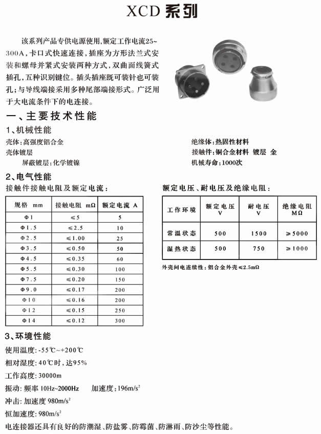 XCD4芯400A圓形電連接器,產(chǎn)品接觸件4芯,每芯400A,線簧插孔,接觸電阻小,插拔柔和,額定電流400A,采用螺紋連接,能防水、防震動(dòng)。開孔100mm,插頭與插座總長(zhǎng)250mm.