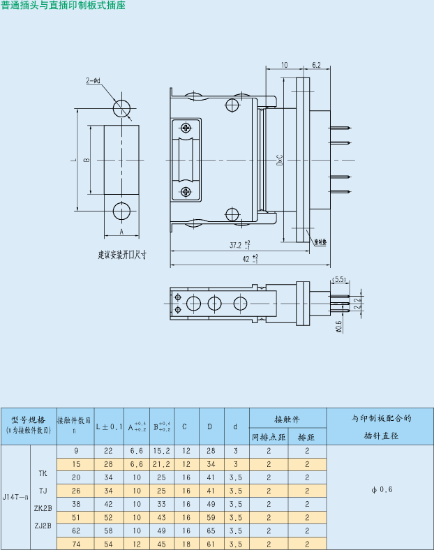 示例:J14T系列,接觸件數(shù)目為15、產(chǎn)品型別插座,接觸件型別插針,面板式安裝的電連接器標(biāo)識(shí)為:J14F-15ZJB.