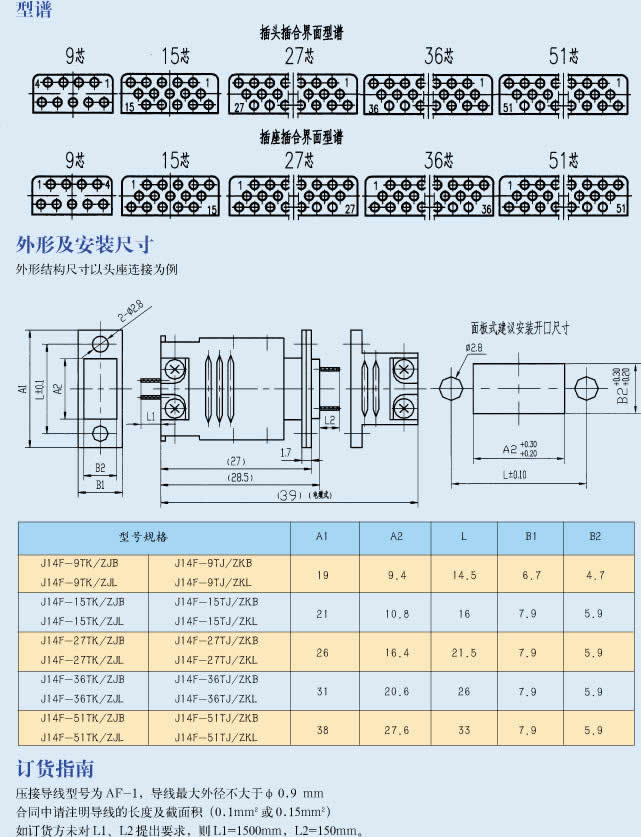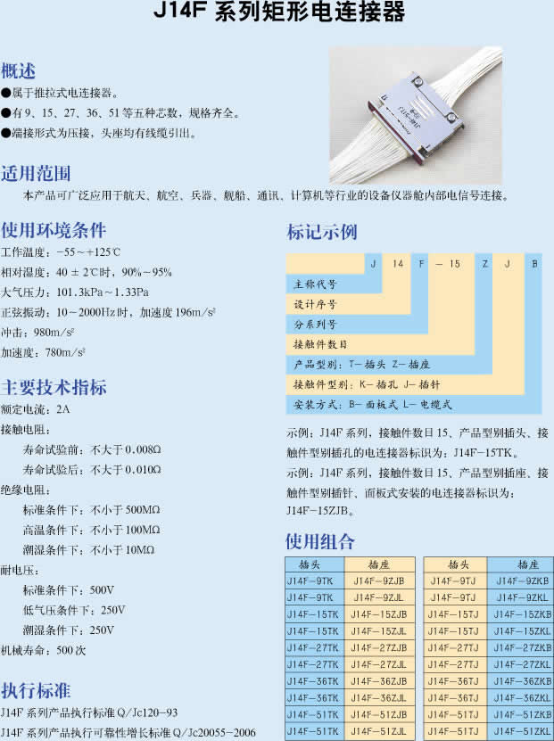 J14F系列矩形電連接器,推拉式鎖緊機構(gòu),端接形式為壓接。